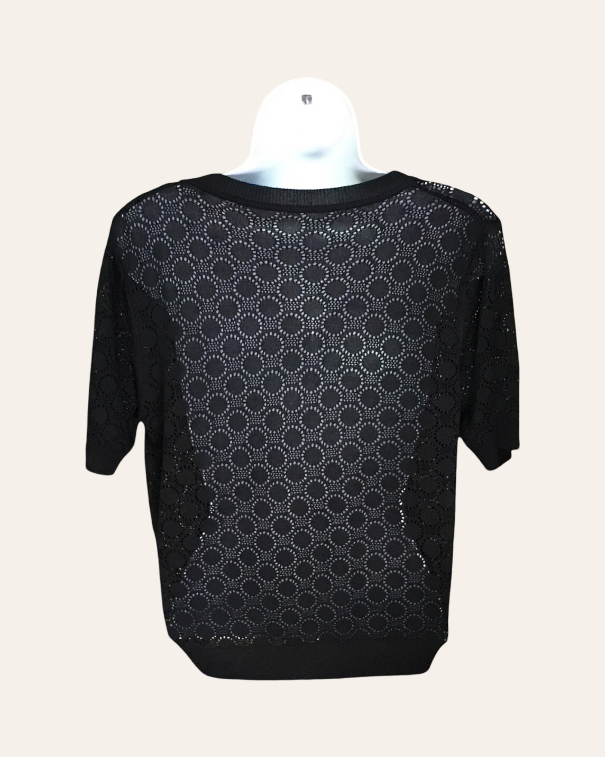 Unleash your daring side with our Short Sleeve Sweater featuring a button-up cardigan style, perfect for fall weather. The striking circle cutout design and flattering v-neck add a touch of adventure to your wardrobe. Get ready to conquer the world in style!