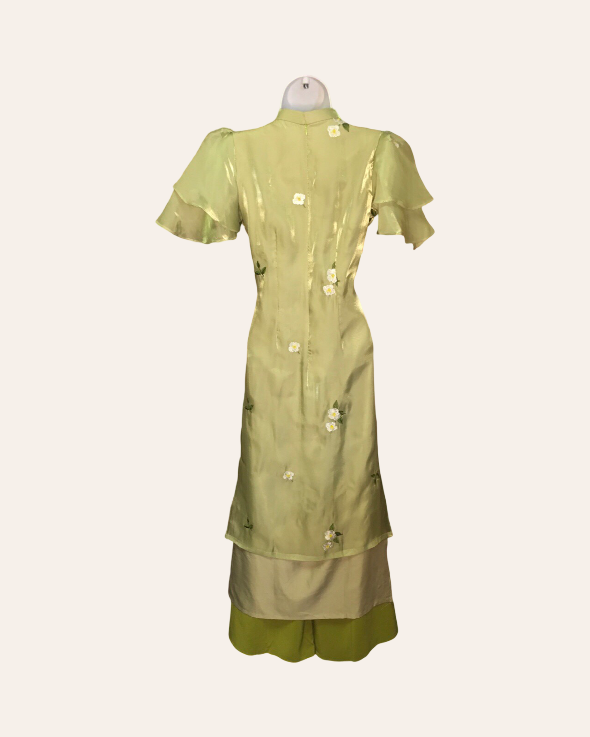 Indulge in the beauty of spring with our exquisite Ao Dai. Crafted with elegant hanging sleeves and adorned with delicate chamomile flowers, this dress will elevate your style to a new level. Embrace sophistication and grace with every step.