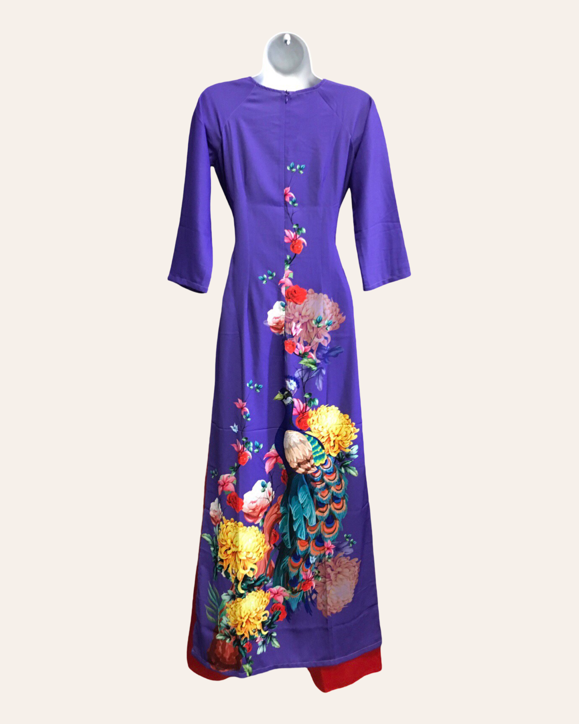Featuring a convenient zip-up closure, this Ao Dai combines traditional charm with practical functionality, allowing for easy wear and a streamlined look. The long, flowing silhouette of the dress enhances its graceful appeal, while the wide-legged trousers offer freedom of movement and a balanced, harmonious fit.